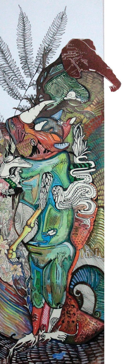 Técnica: Acrílico, acuarela y grabado en linóleo