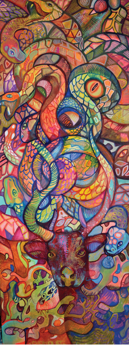 Técnica: Acrílico y grabado en linóleo
