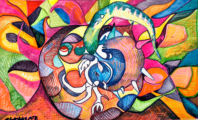 ANACONDA Autor: CHOKOLATETítulo: AnacondaTécnica: Acrílico y estilógrafoDimensiones: 49cm x 32mAño: 2024